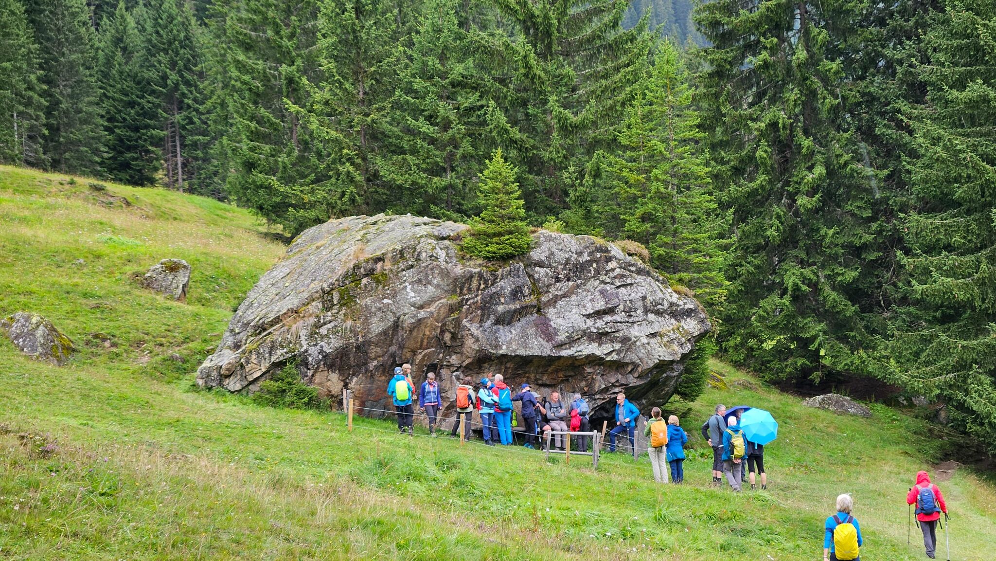 Am Vormittag wird individuellen Interessen nachgegangen, da der Himmel verhangen und der Niederschlag bis zum Boden reicht. Ab Mittag machen wir uns gemeinsam auf die Dorfrunde und lassen uns an den Stationen über Geschichte und Geologie unterrichten.