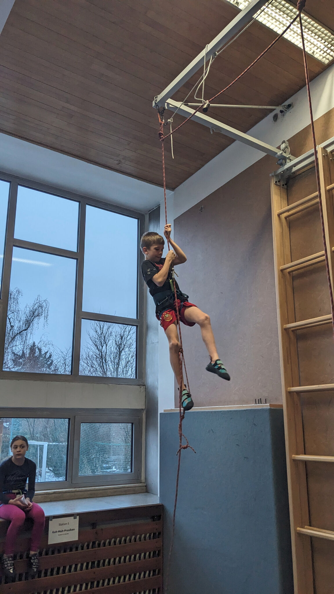 Viel Spaß hatten heuer wieder die Kletter-Kinder zwischen 5 und 12 Jahre beim Minicup 2026. Neben den traditionellen Stationen Klettern, Reifen durchsteigen, „Hängt in höher“ und Prusiken, gab es wieder einen herausfordernden Parcour, der immer besonders beliebt ist. Dieses Jahr waren ca. 30 Kinder, teilweise mit ihren kleinen Geschwistern und Eltern da.